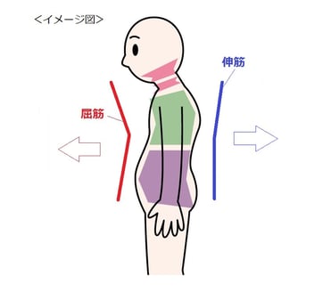 姿勢の悪さから、屈筋が縮まったままの状態になり、伸筋はそれを整えようと