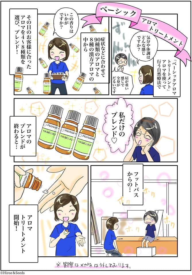 イラストレーターの川本広恵さんが、アロマトリートメントを実際に受けてみての施術体験をマンガにして描いてくだいました☆