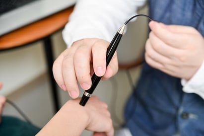 こんな感じで、経穴に順番に触れて数値を図っていきます。