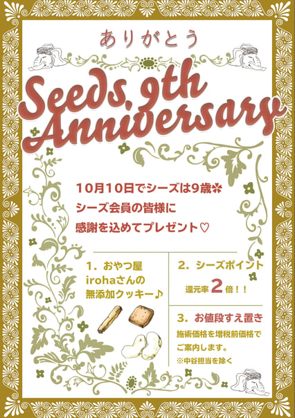 みなさまのおかげを持ちまして、10月10日でシーズは9周年を迎えることとなりました。