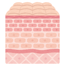 皮膚はからだの外側の表皮の層から、皮下組織(皮膚の内側の層ですね)や脂肪などの層を介して筋肉・骨へとつながっています。