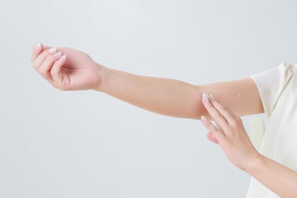 腕をばした状態から、肘の手の甲側の皮膚を引っ張って関節を曲げようとしてみてください。