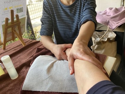 ハンドトリートメントを利用者さんや職員さんにお話しなどお伺いしながらして