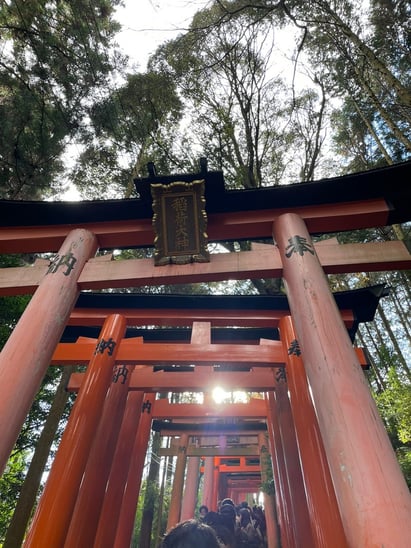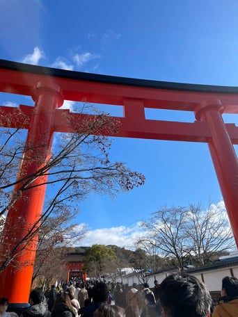 この日は快晴で、参拝者も多く、まさに絶好の日和でした。伏見稲荷は、最初に訪れたときはその圧倒的な雰囲気に少し圧倒されていましたが、今では私の心を支える特別な場所のひとつです。この神社に訪れるたびに、清浄な空気に包まれ、精神が凛と引き締まる感覚を覚え、心身がリフレッシュされるのを感じます。